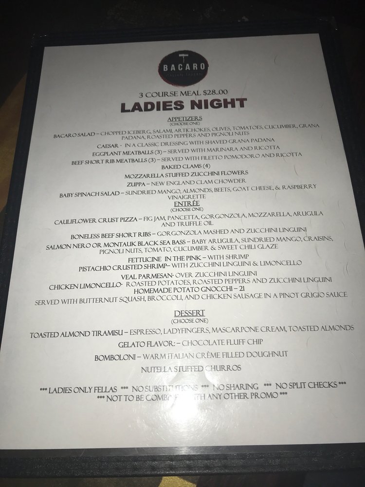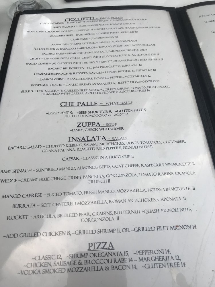Bacaro Italian Tavern is a casual yet elegant spot in Massapequa Park, NY, offering a wide array of Italian delights. From salads like Baby Spinach with sundried mango to indulgent pizzas like the Vodka Smoked Mozzarella & Bacon Pizza, there's something for every palate. Customer reviews rave about the friendly service and generous portions, with standout dishes like Gorgonzola butter bread and Salmon Nero. The restaurant boasts amenities like outdoor seating, free Wi-Fi, and a full bar, making it a versatile choice for various occasions. Whether you're looking for a cozy dinner or a lively happy hour spot, Bacaro Italian Tavern has you covered. Don't miss out on their dessert options, like the chocolate cup with gelato or brownie bites, for a sweet ending to your meal. Visit Bacaro for a taste of authentic Italian cuisine with a modern twist.